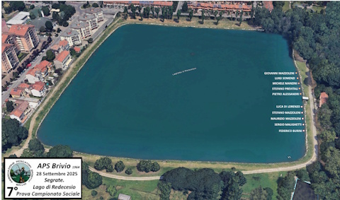 APS Brivio Stagione 2025 7° Gara Sociale. Segrate (MI), Lago di Redecesio CLICCARE SULL'IMMAGINE PER INGRANDIRLA |